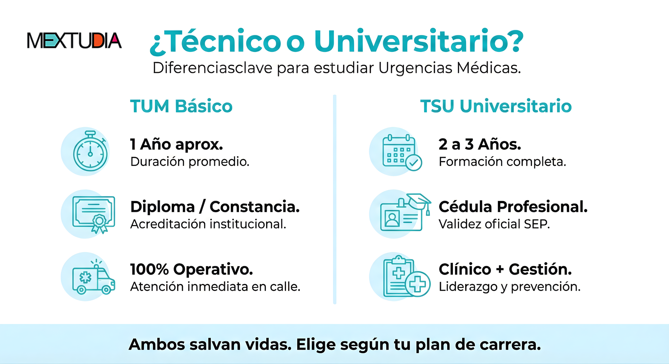 - TUM Avanzado: Es el nivel superior (a menudo requiere TSU o Licenciatura). Manejas cuidados cardíacos avanzados, procedimientos invasivos y farmacología compleja.
