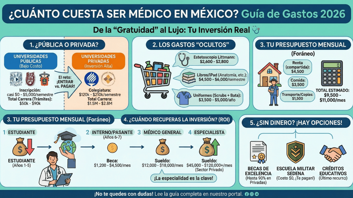 | IPN (Politécnico) | $440 (Inscripción) | $8,000 | Formación técnica rigurosa y excelente nivel en el ENARM. |